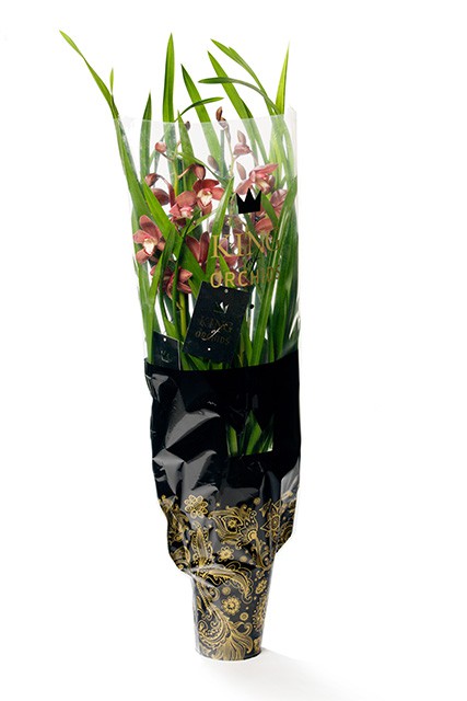 King of Orchids is supplied in a luxurious box with a gold print, with 4/5 uniform Cymbidiums per box. The exclusive packaging lends extra appeal to the display in the store. And with their special label and decorative sleeve King of Orchids is also the perfect gift for a customer who wants to give something special!